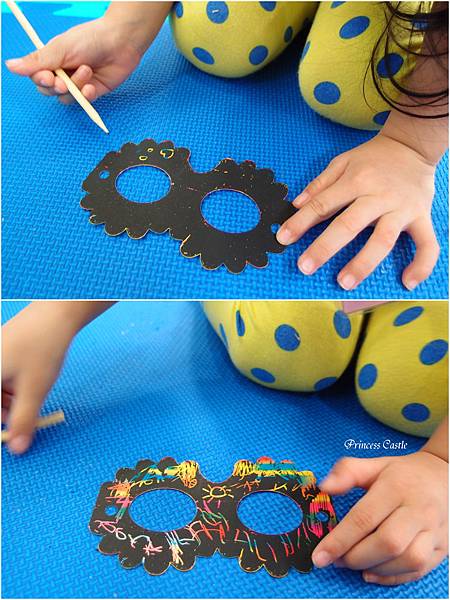 只要用小木棒刮去紙上的黑色表層,就會出現五顏六色的色彩囉!